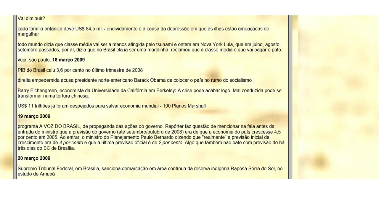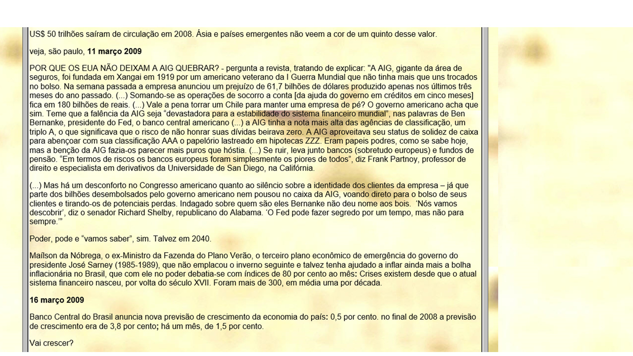 travelog da crise  2008..........                   última atualização: abril 2009