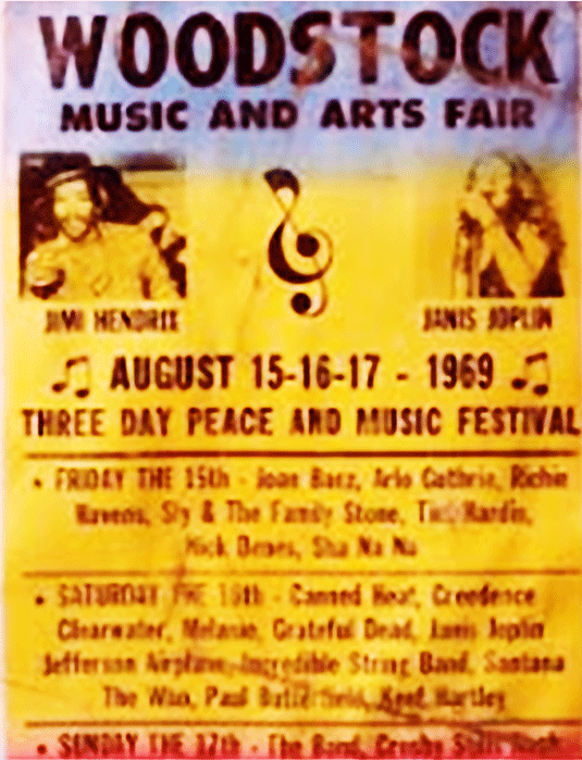 Realizado nos dias 15, 16 e 17 de agosto, três semanas depois da alunissagem da Apolo 11, Woodstock anunciava 30 entre algumas das maiores atrações e novidades da hora do já então chamado progressive rock em diferentes feições: do pós-acid-rock de Jefferson Airplane, Janis Joplin ou Jimi Hendrix a Blood Sweat & Tears, um dos prenunciadores do jazz-rock, ao rock-chicano de Santana e ao chamado soft rock de Crosby, Stllls and Nash.  As atrações seriam por si só motivo de sobra para Woodstock superar as expectativas dos organizadores ainda na fase de produção, quando do próprio site onde deveria se realizar - nas imediações da cidadezinha de Sautergies, a dois passos do basement de Bob Dylan - só já tinha ficado o nome. Bastaria pensar que Wight '69, realizado por aqueles mesmos dias numa ilhota no sul da Inglaterra, foi o fenômeno que foi apenas por causa do retorno de Bob Dylan à cena após três anos de reclusão.