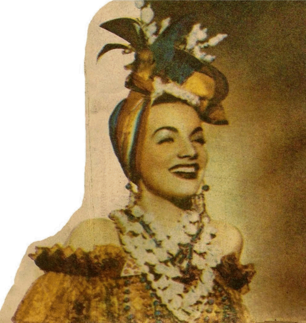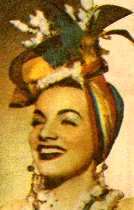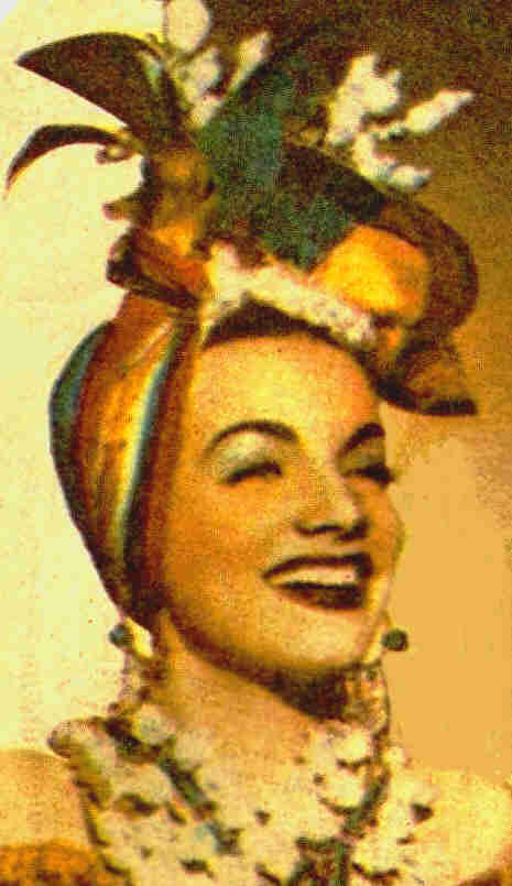 Em 1948, quando se apresentou no Palladium Theatre de Londres, um despacho da agência Associated Press informava que o agrado foi geral mas o seu chapéu foi a atração e o Times descrevia no melhor british style o seu chapéu exótico e bonito como uma árvore de natal, de um pé de altura, feito de penas verdes, contas iguais a esmeraldas e ameixas e uvas de vidro cintilante.