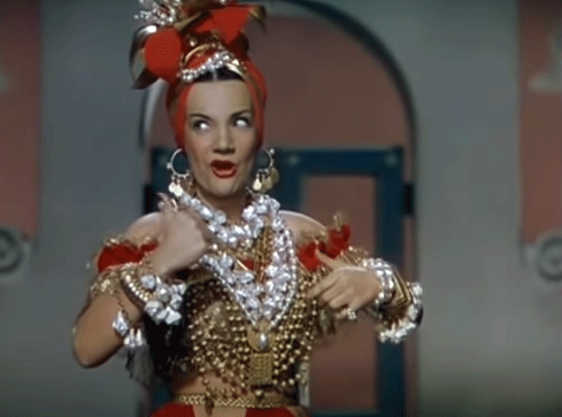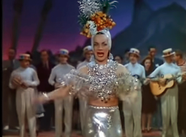 A personagem que fez da atriz a mulher que mais pagava imposto de renda nos Estados Unidos em 1946 nasceu em Banana da Terra, de 38. Por achar um absurdo a estrela ganhar 20 contos de réis e ele apenas cinco, Ary Barroso retirou Na Baixa do Sapateiro do filme, deixando o caminho livre para um jovem músico baiano. Dorival Caymmi só precisou cantar O Que É Que a Baiana Tem uma vez para garantir o emprego. Ex-ajudante da chapeleira francesa Madame Boss, Carmen pediu que a irmã Aurora comprasse "três Bs" (bom, bonito e barato) e confeccionou a fantasia que ia vestindo à medida que a música era cantada. Foi essa imagem que o empresário Lee Schubert levou para os Estados Unidos.