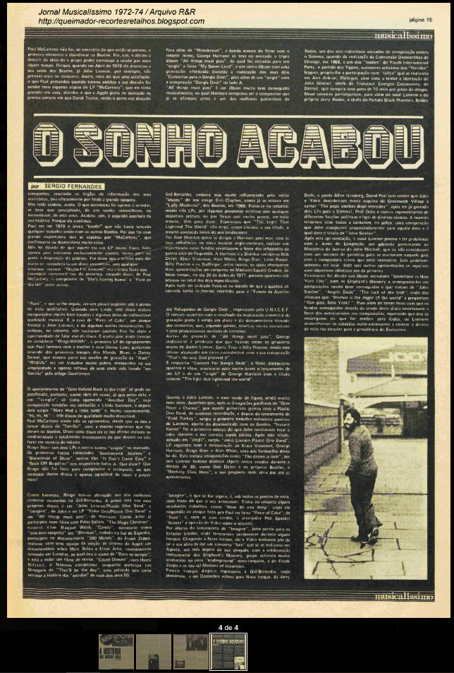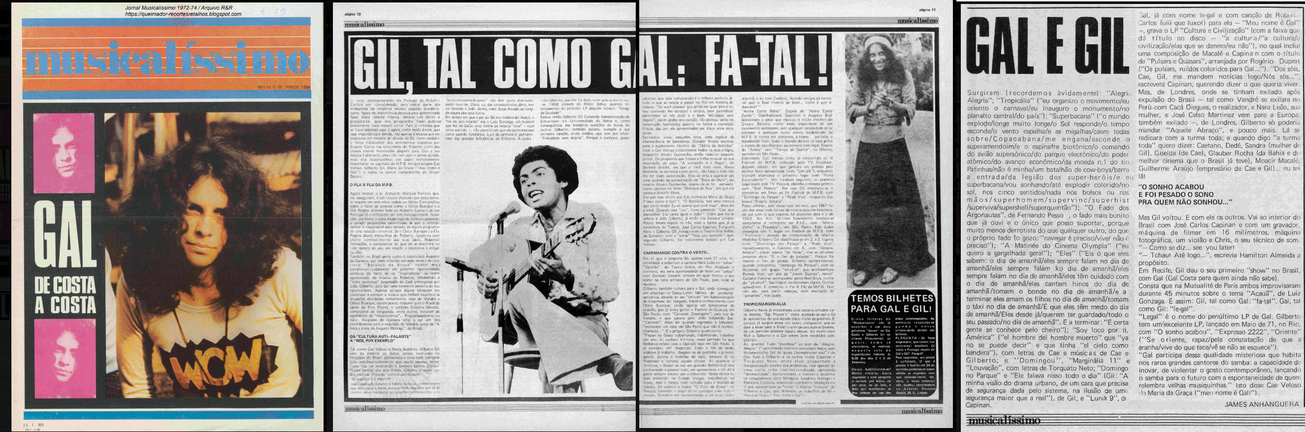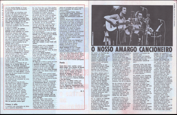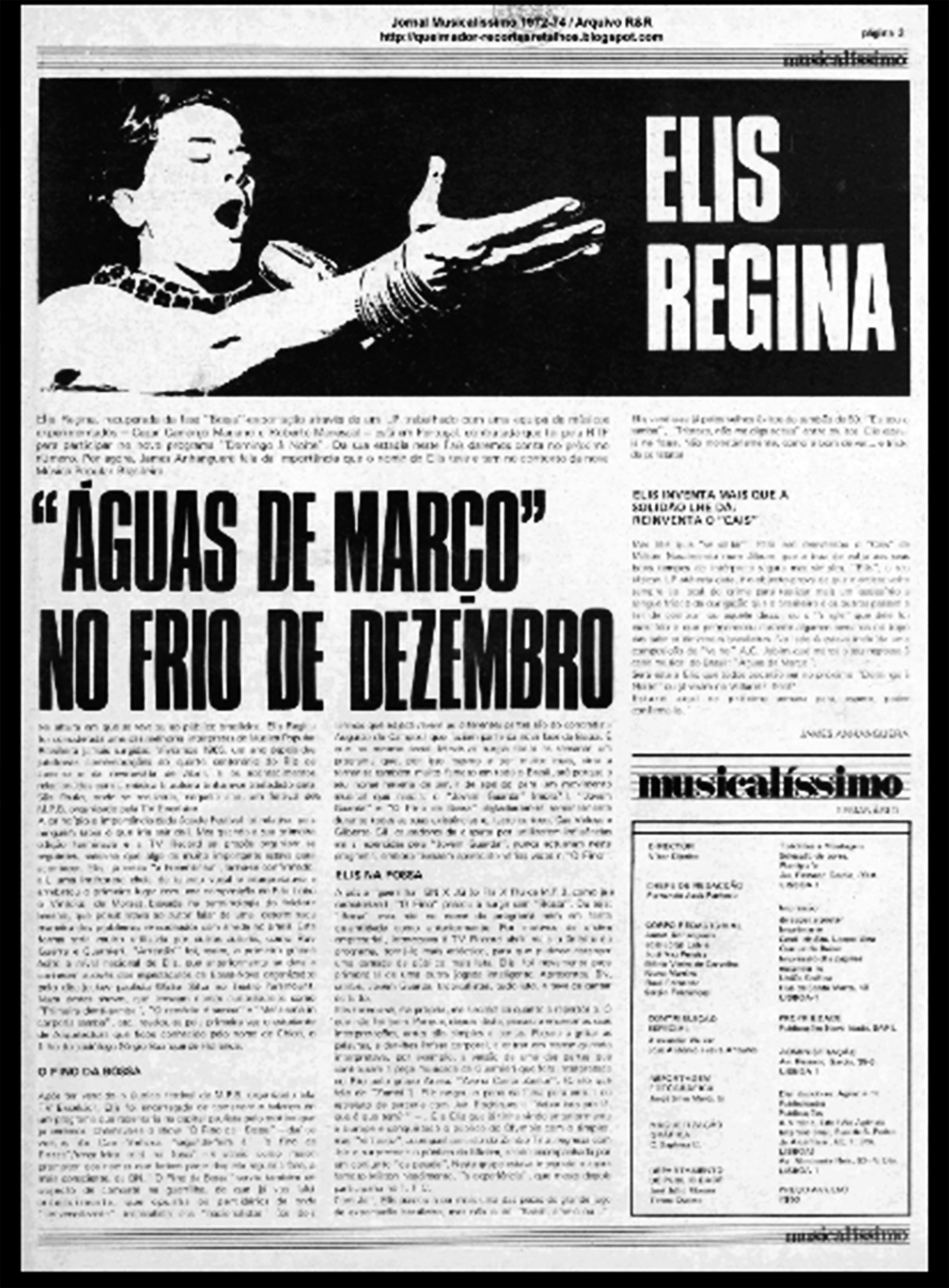 1973       .jornal Musicalíssimo, Lisboa: redação; crónicas e noticiário sobre música popular, MPB, Brasil - atualidade política e social arte literatura;